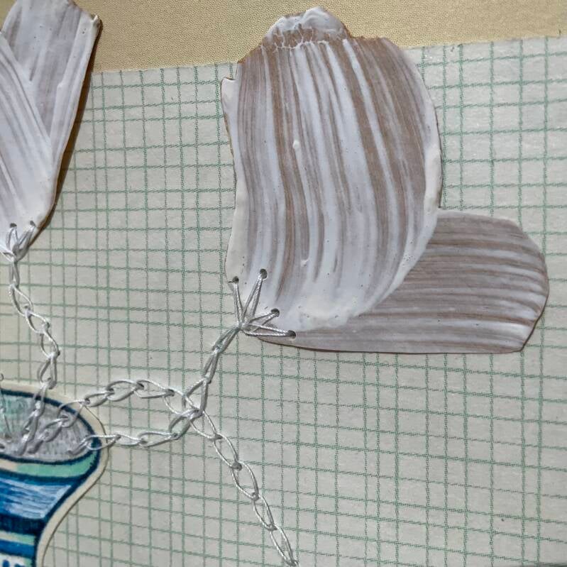 VERKOCHT - Witte fantasie | gered papier | acrylverf balpen marker potlood naaigaren | op A4 | 75,-